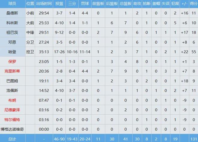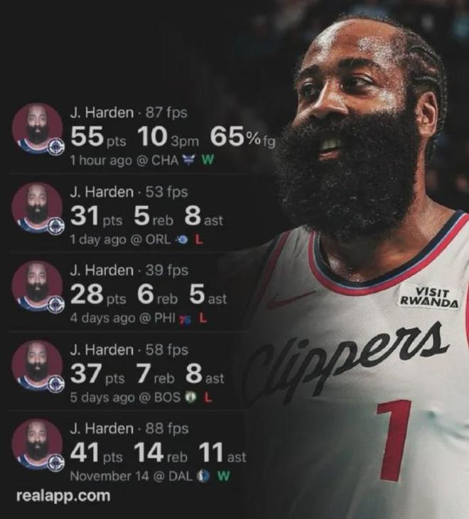 天啊,都36岁的人了,哈登投篮26中17,其中三分球16中10,罚球14中11狂轰55分外加3板7助,带领快船131-116击败黄蜂。